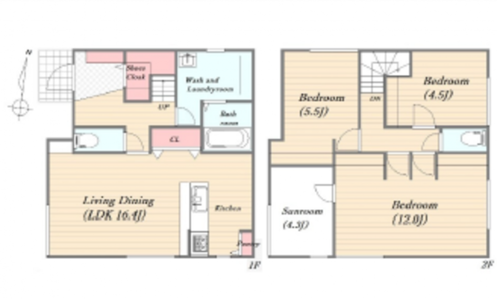 1F 16.4LDK SIC ランドリールーム 2F 12洋 5.5洋 4.5洋 4.3サンルーム トイレ