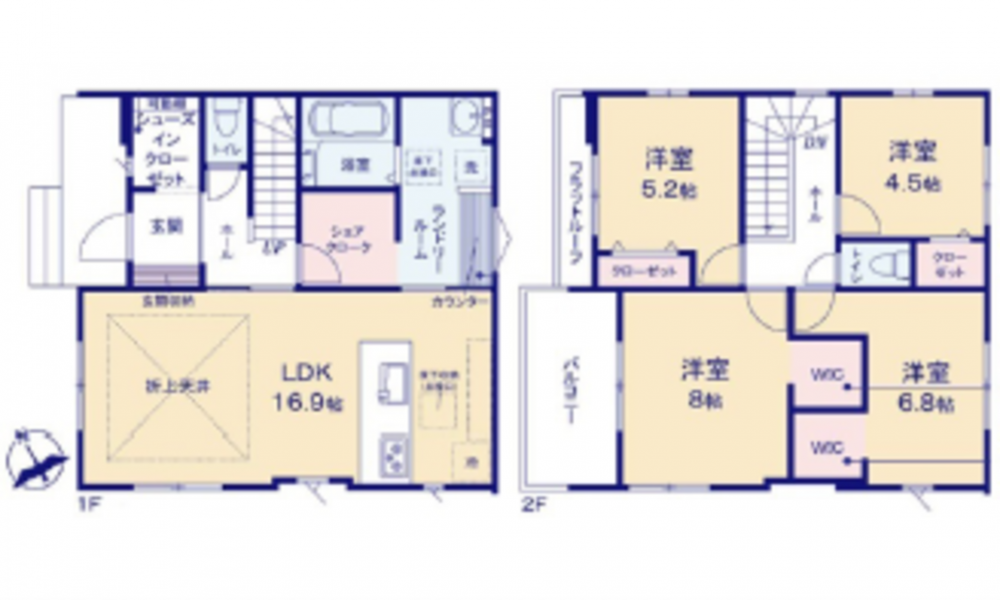 1F 16.9LDK SIC シェアクローク ランドリールーム 2F 8洋 6.8洋 5.2洋 4.5洋 WIC トイレ