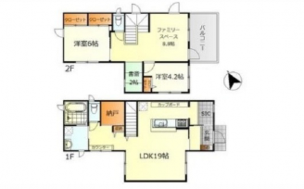 1F 19LDK 納戸 SIC 2F 6洋 4.2洋 2書斎 8.8ファミリースペース トイレ