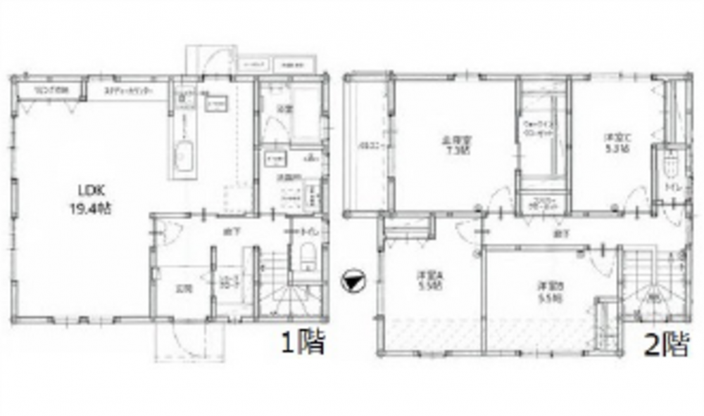 1F 19.4LDK SIC 2F 7.3洋 5.5洋 5.5洋 5.3洋 WIC トイレ