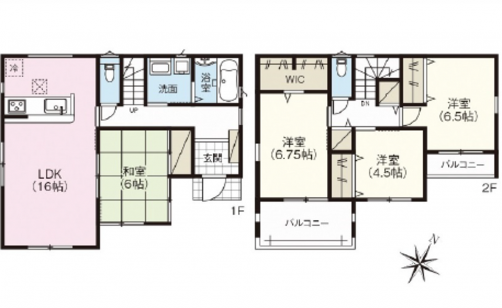 1F 16LDK 6和 2F 6.75洋 6.5洋 4.5洋 WIC トイレ