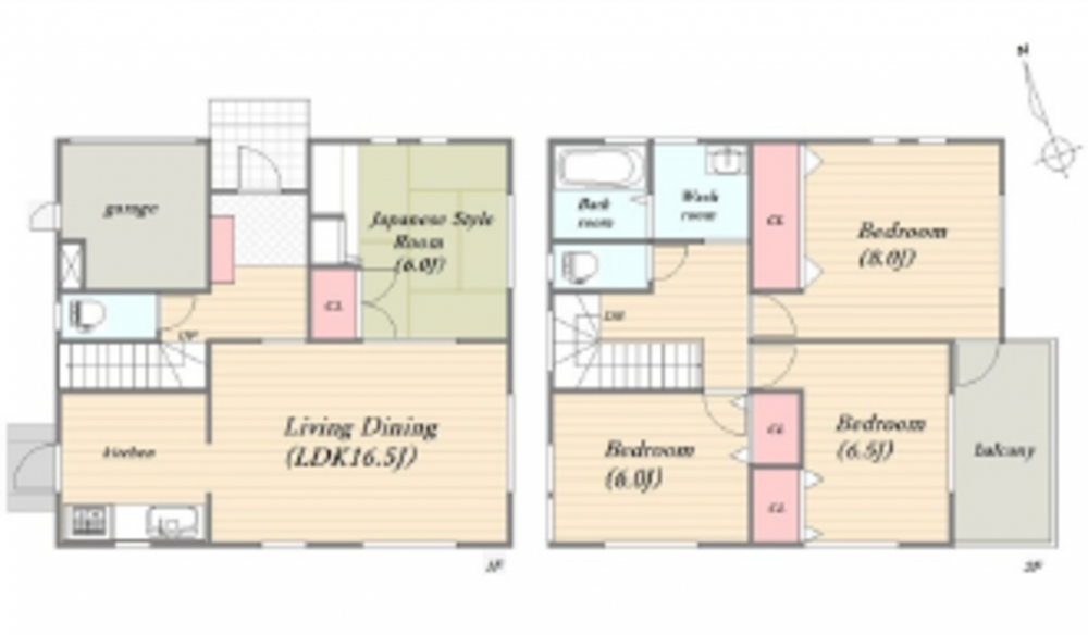 1F 16.5LDK 6和 ガレージ 2F 8洋 6.5洋 6洋 浴室 洗面 トイレ
