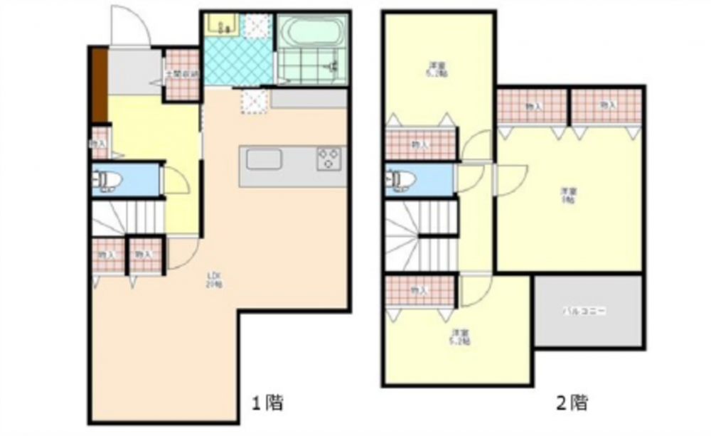 1F 20LDK 土間収納 2F 8洋 5.2洋 5.2洋 トイレ