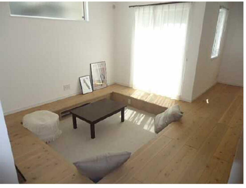 室内無垢のフローリング 壁は漆喰 乾太くん標準装備