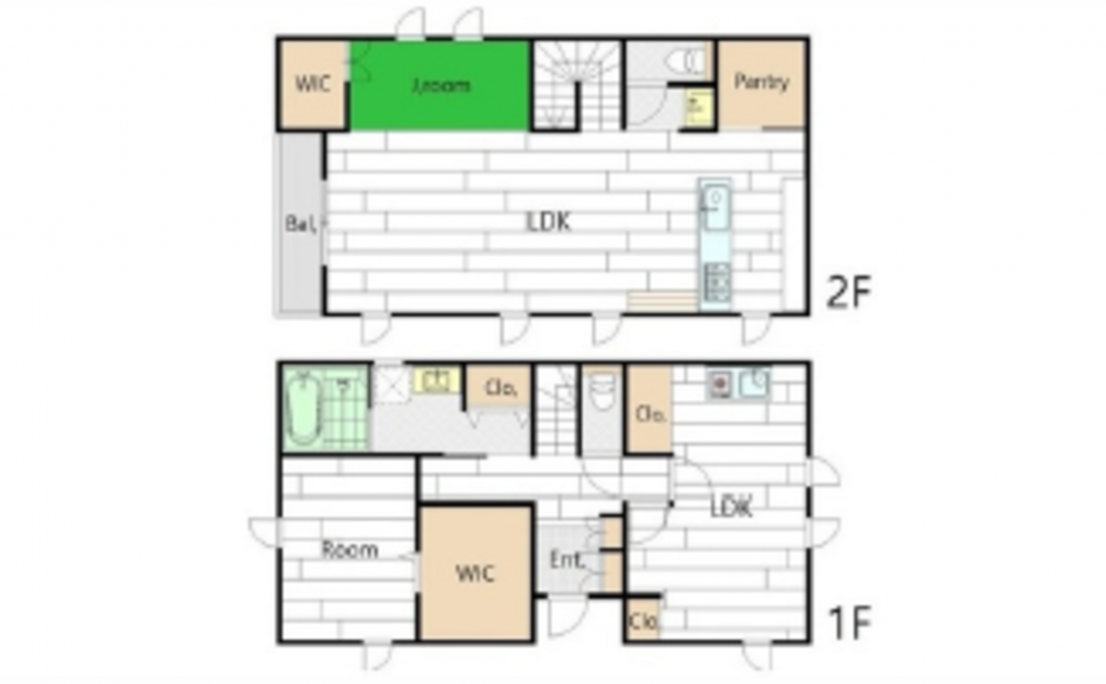 1F LDK 洋 WIC 2F LDK 和 パントリー WIC トイレ