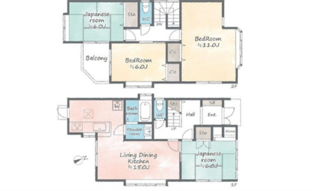 1F 約15LDK 約6和 2F 約11洋 約6洋 約6和 トイレ