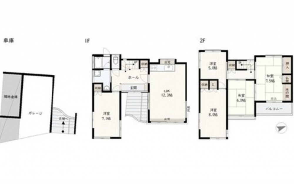 1F 12.3LDK 7.3洋 2F 8洋 7.5和 6和 5洋