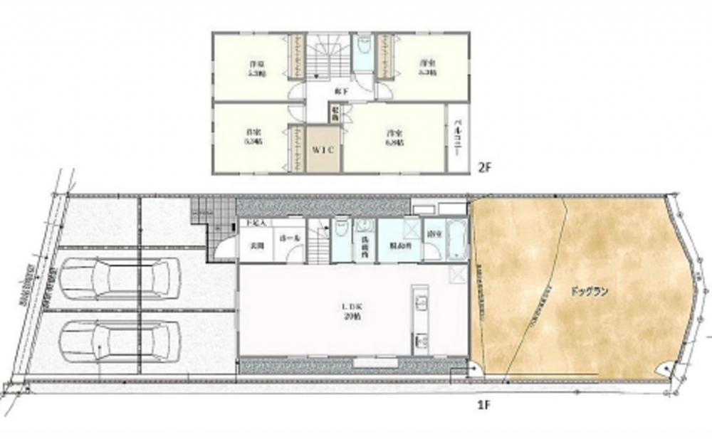 1F 20LDK 2F 6.8洋 5.3洋 5.3洋 5.3洋 WIC トイレ