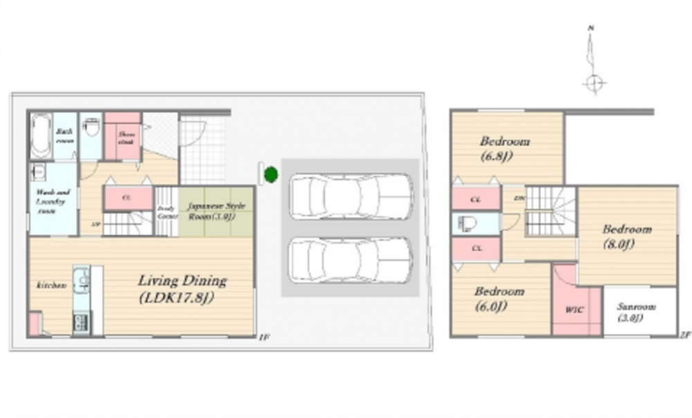 1F 17.8LDK 3和 SIC 2F 8洋 6.8洋 6洋 3サンルーム WIC トイレ