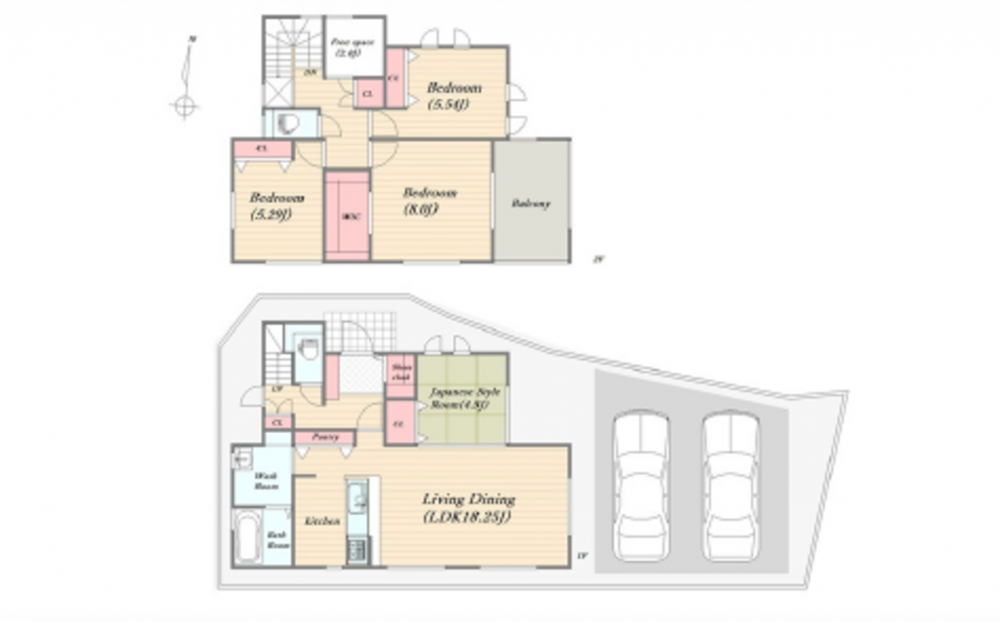 1F 18.25LDK 4.5和 SIC 2F 8洋 5.54洋 5.29洋 2納戸 WIC トイレ