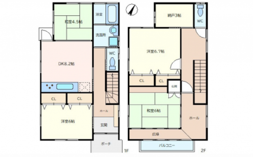 1F 8.2DK 6洋 4.5和 2F 6.7洋 6和 3納戸 広縁 トイレ