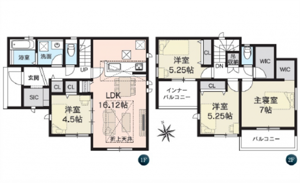 1F 16.12LDK 4.5洋 SIC 2F 7洋 5.25洋 5.25洋 WIC トイレ