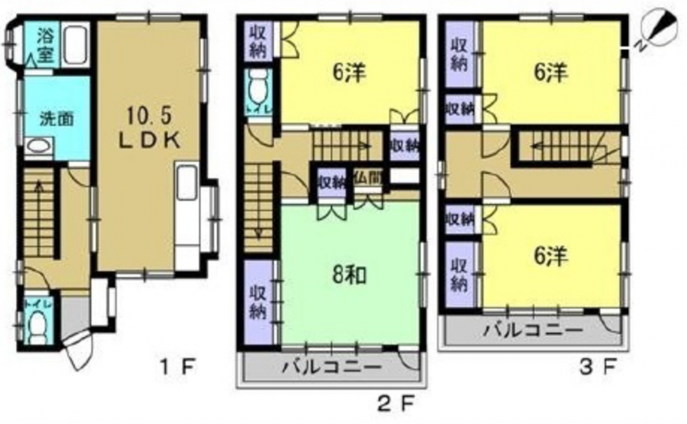 1F 10.5LDK 2F 8和 6洋 トイレ 3F 6洋 6洋