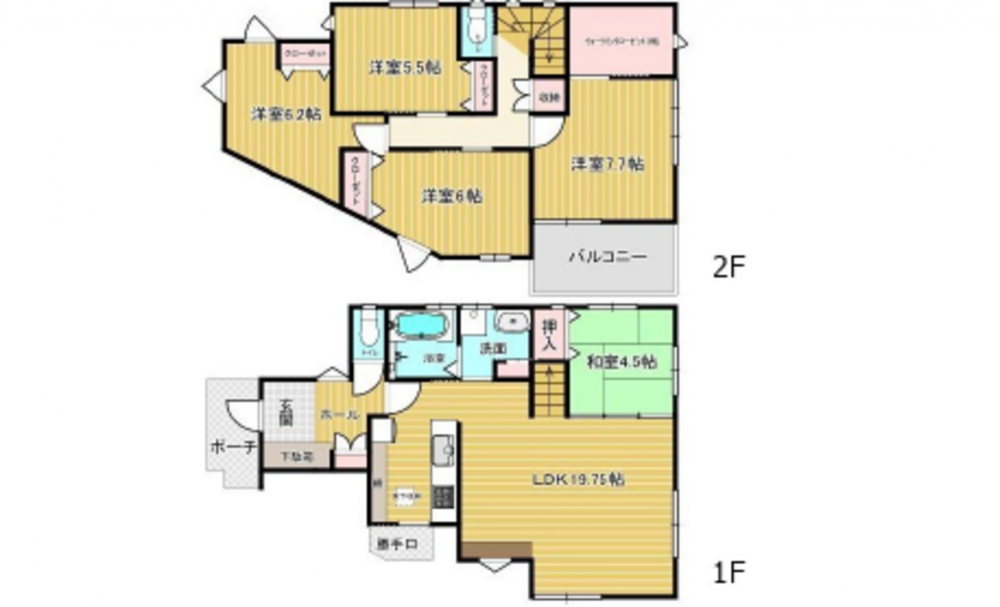 1F 19.75LDK 4.5和 2F 7.7洋 6.2洋 6洋 5.5洋 3WIC トイレ