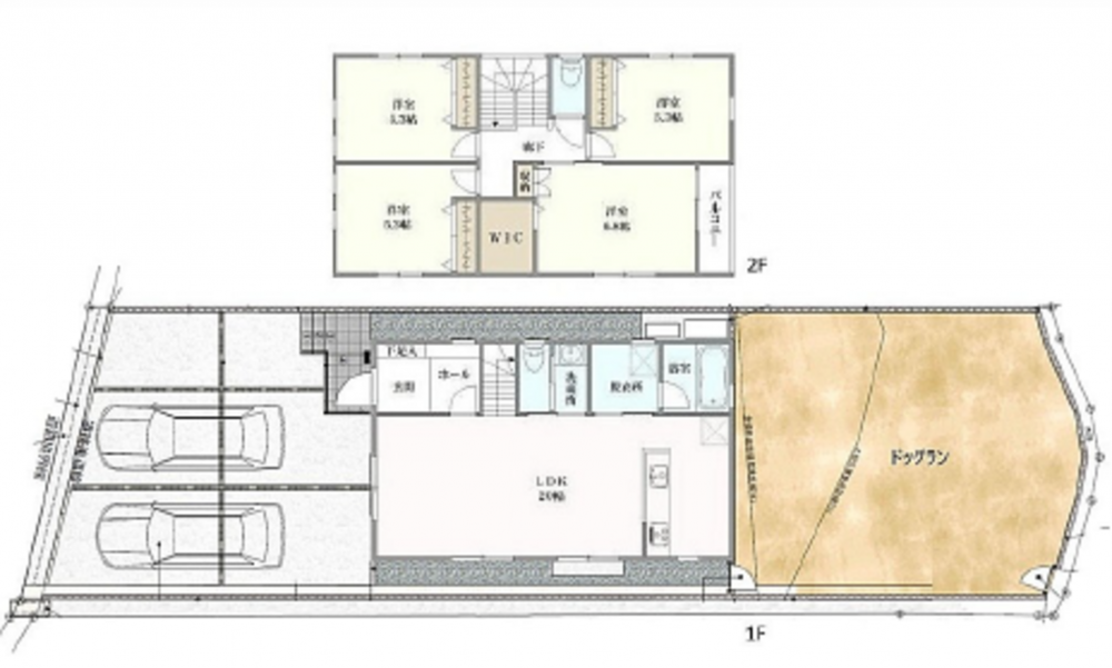 1F 20LDK 2F 6.8洋 5.3洋 5.3洋 5.3洋 WIC トイレ