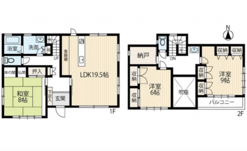 1F 19.5LDK 8和 2F 9洋 6洋 納戸 トイレ