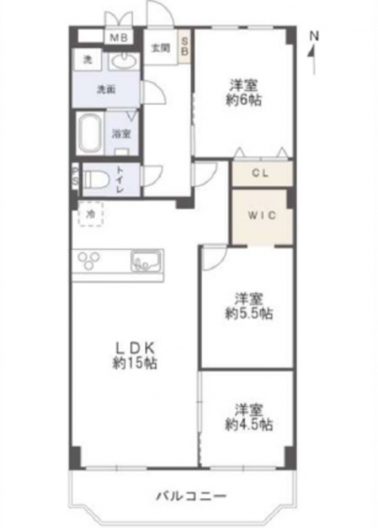 約15LDK 約6洋 約5.5洋 約4.5洋 WIC
