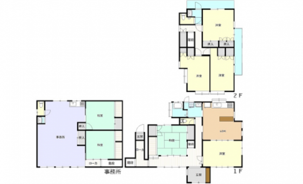 1F 車庫 2F 事務所 和 和 トイレ 1F LDK 洋 和 2F 洋 洋 洋 トイレ